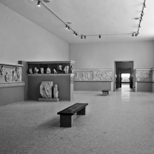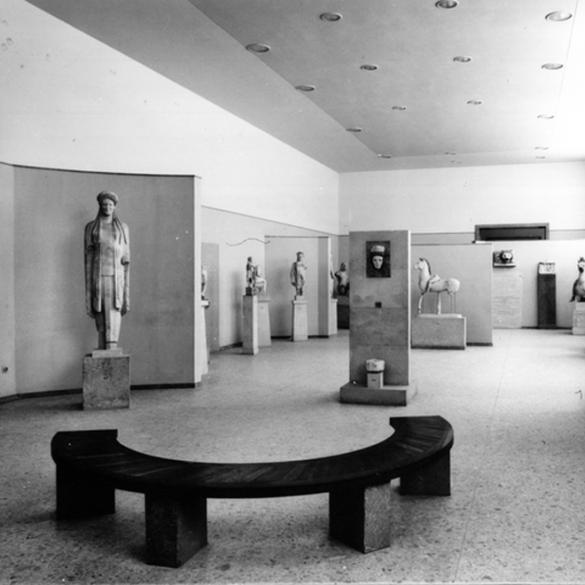 In 1833 the Turkish garrison withdrew definitively from the Acropolis which, in 1834, became an archaeological site proclaimed by the newly established Greek State. Then began efforts to gather, preserve and protect the antiquities scattered on the Rock. Their number, which was increasing steadily due to the archaeological excavations being conducted in the hill’s ancient deposits, made it pressing to create a museum on the site. Thus began the search for a suitable location, which finally led to the decision in 1863 to establish the Museum in a hollow in the ground, southeast of the Parthenon. The Museum was founded in 1865, completed in 1874 and housed the finds of the first excavations on the Acropolis; however, it proved insufficient to accommodate the abundance of new finds which had been brought to light during the large, ongoing excavations, leading thus to the construction of a second small building in 1888, next to the previous one. Finally, following the Second World War, a radical architectural refurbishment was undertaken resulting in the creation of a new building that continued to operate until 2007.